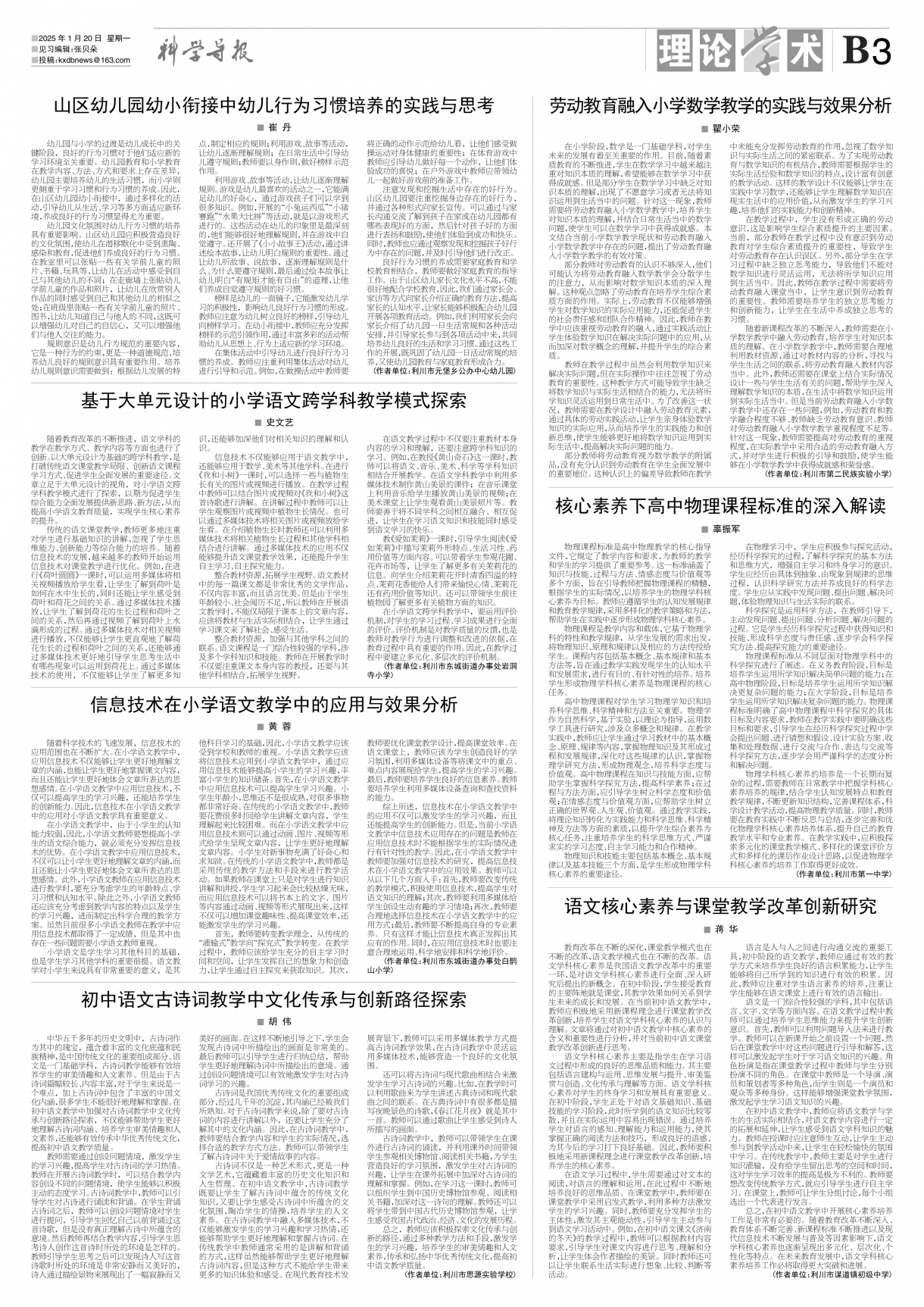 《科学导报》2025年1月20日版面速览-ag官网
